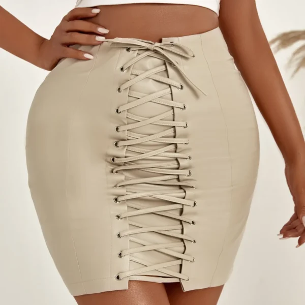 SMY Casual Pu Leather Double Zipper Bow Short Skirt