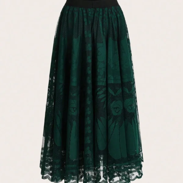 SMY Gorgeous Women’S Long Lace A-Line Mesh Skirt