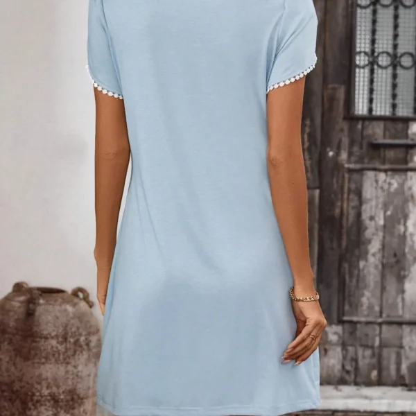 SMY Elegant Trend Lace Stitching Small Round Neck Women’s Dress