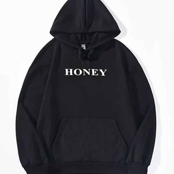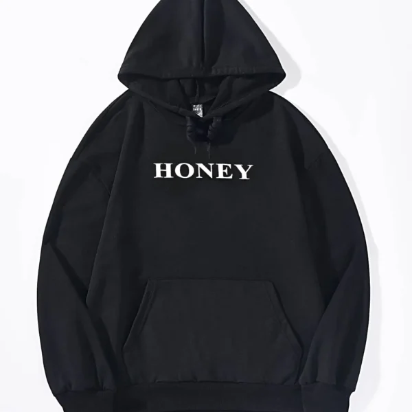 SMY Casual Letter Printed HONEY Hooded Regular Hoodie