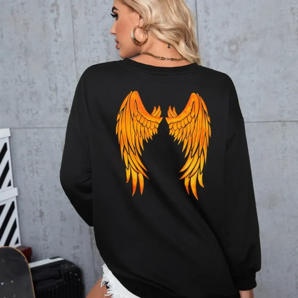 SMY Casual Wing Pattern Round Neck Long Hoodie
