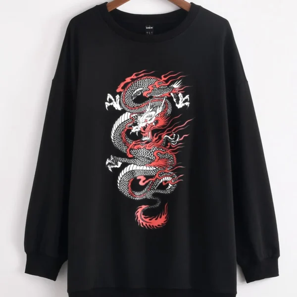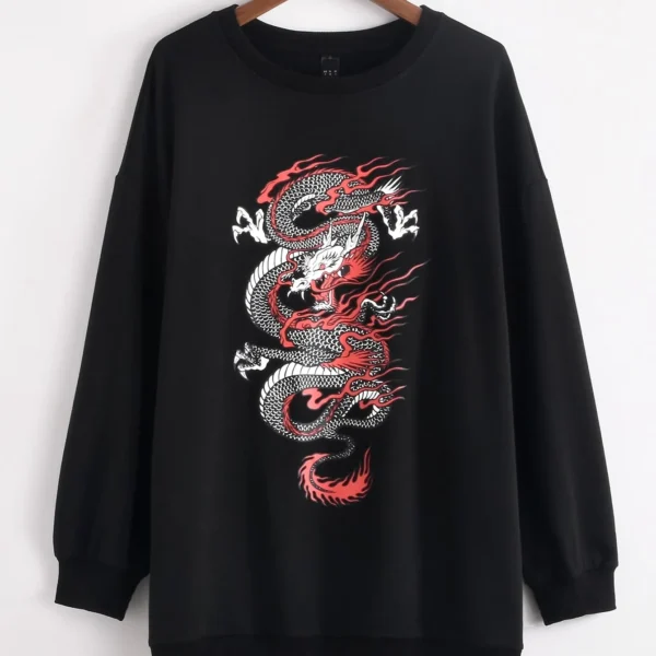 SMY Casual Dragon Pattern Round Neck Long Hoodie