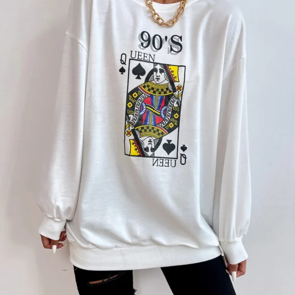 SMY Casual Poker Card Pattern Round Neck Long Hoodie