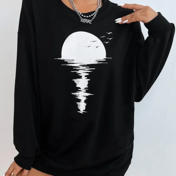 SMY Casual Moon Pattern Round Neck Long Hoodie