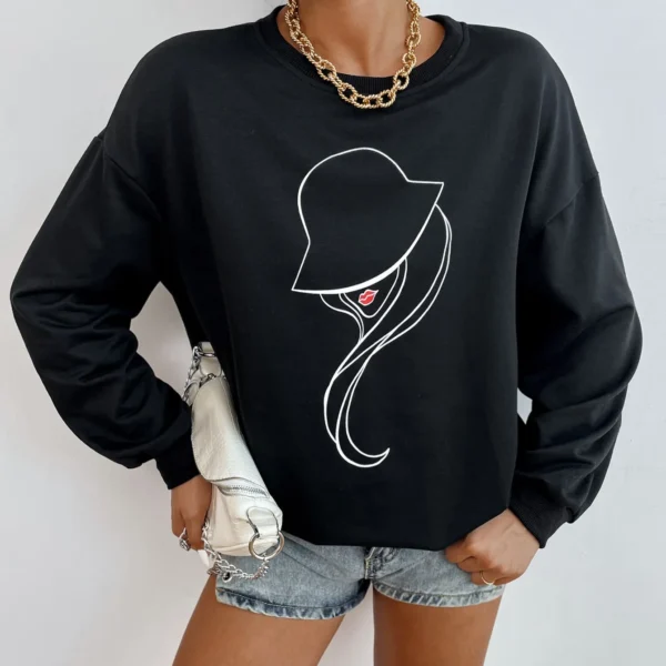SMY Casual Female Avatar Pattern Round Neck Long Hoodie