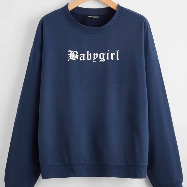 SMY Casual Letter Printed Blessed Round Neck Long Hoodie