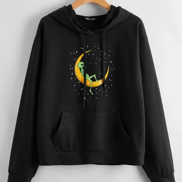 SMY Hooded Long Aliens And Moon Pattern Hoodie