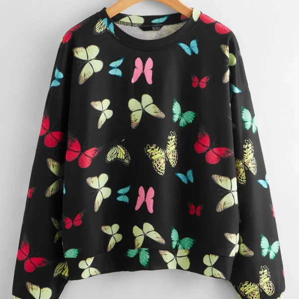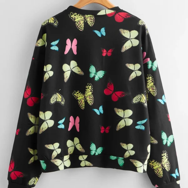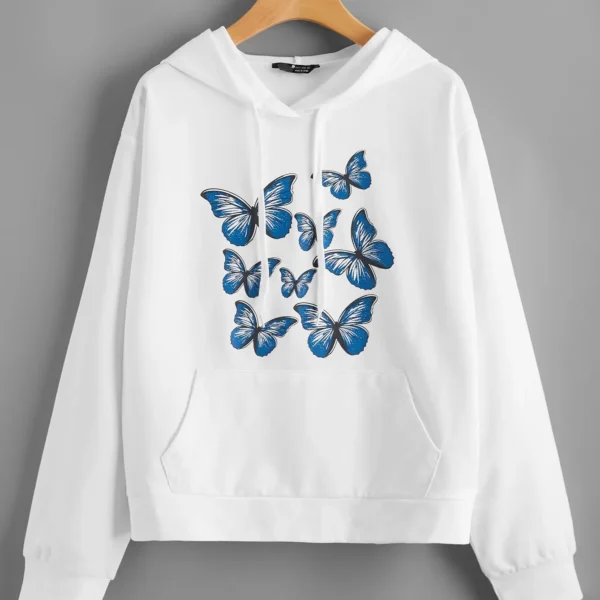 SMY Butterfly Pattern Small Round Neck Regular Printed Hoodie