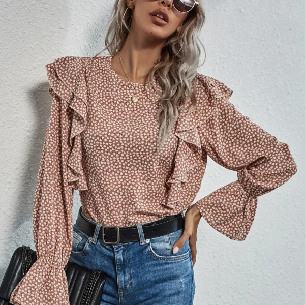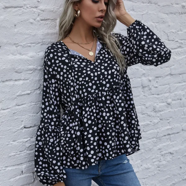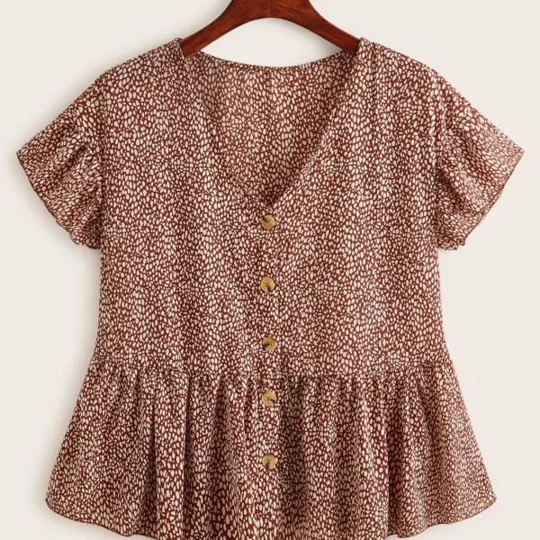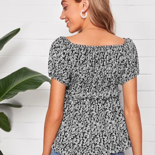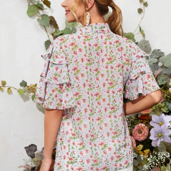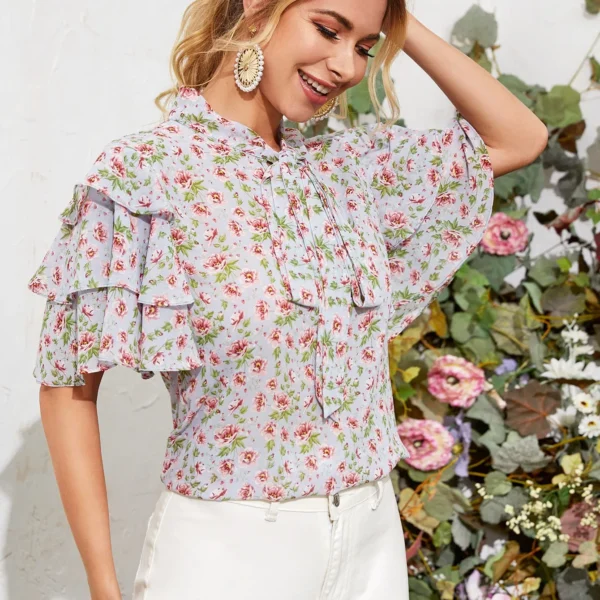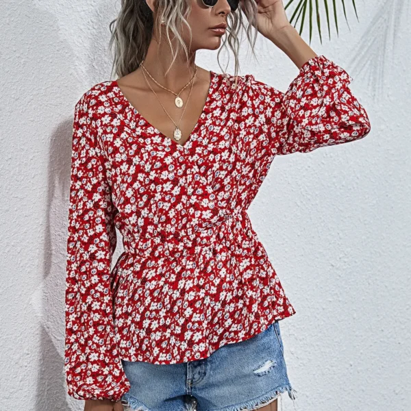 SMY Floral Print Small V-Neck Overlapping Shirt