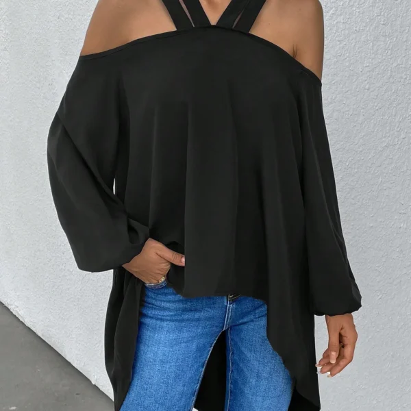 SMY Gorgeous Trend Slanted Shoulder Collar Long Sleeved Shirt