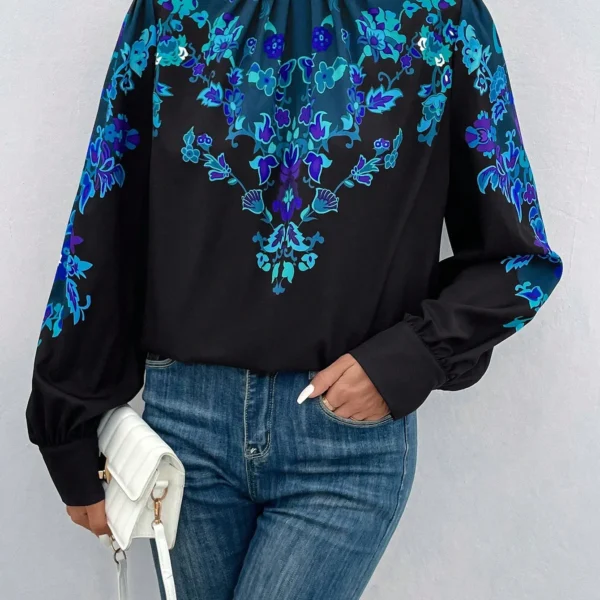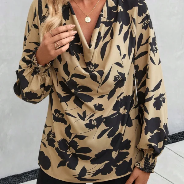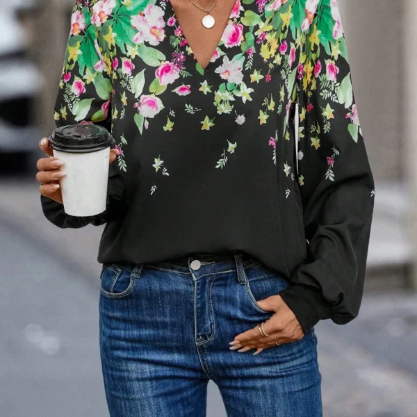 SMY Casual Floral Print Trend Gap V-Neck Women’s Shirt