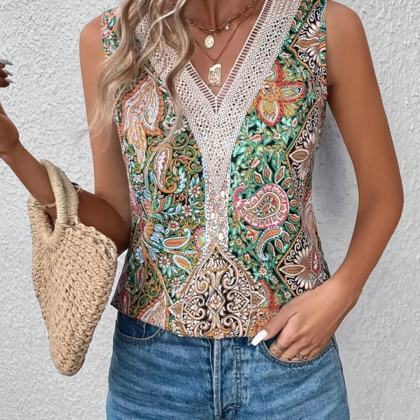 SMY Elegant Trend Small V-Neck Lace Stitching Women’S Vest