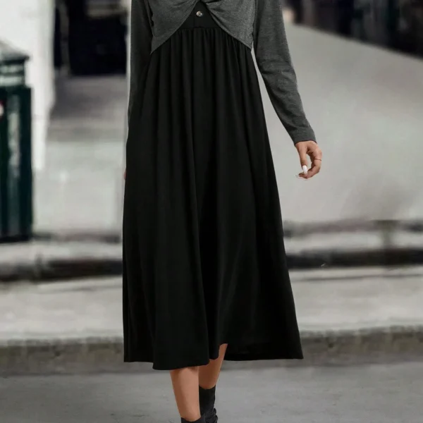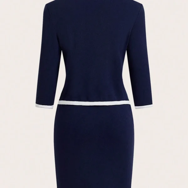 SMY Clasi Women’s Elegant High-End Contrast Color Jacket Dress 2pcs Set, Spring/Summer