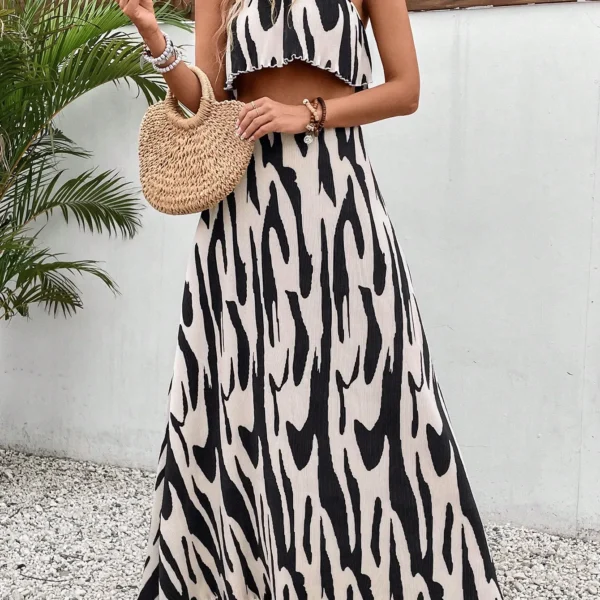 SMY Women Random Print Crop Top And Skirt Set, For Summer, Vacation, Beach