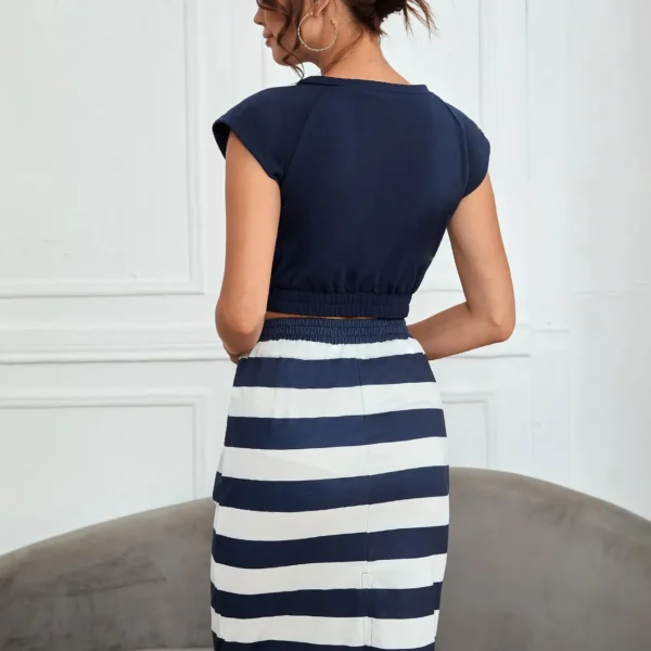 SMY Two Piece Set Of Casual Round Neck Short Skirt