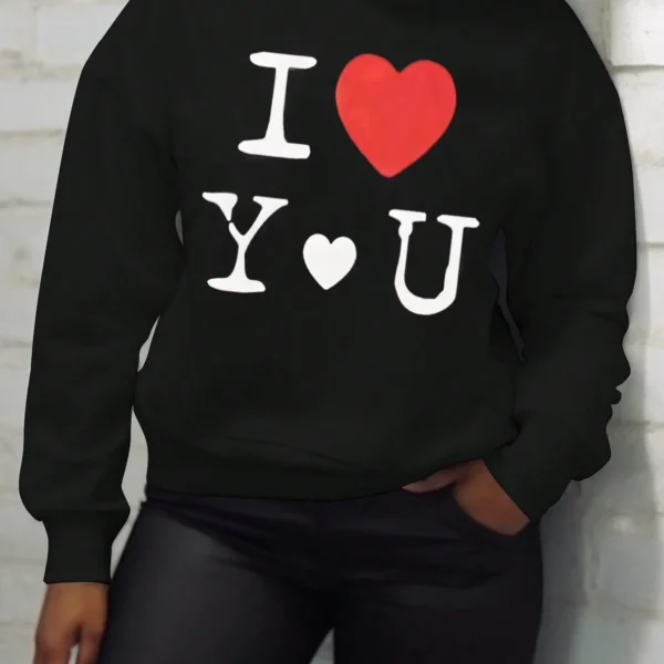 SMY Casual Trend Small Round Neck Love Pattern Hoodie
