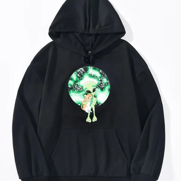 SMY Casual Alien And Cat Pattern Hooded Regular Hoodie