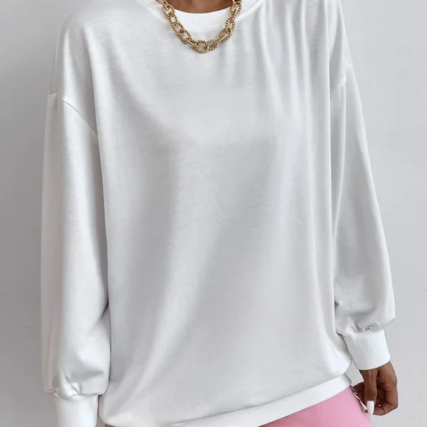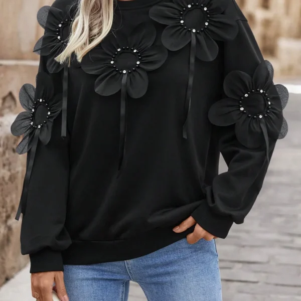 SMY Women 3D Floral Decor Round Neck Dropped Shoulder Long Sleeve Fashion Sweatshirt, Autumn