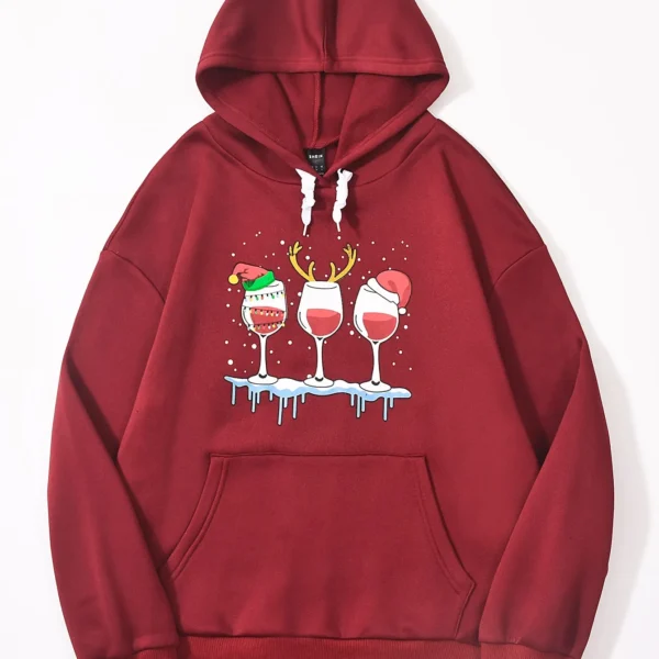 SMY Christmas Cartoon Print Casual Hooded Regular Hoodie