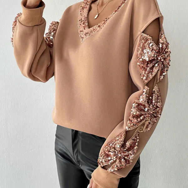 SMY Clasi Women’s Casual V-Neck Hollow Out Bowknot Sleeve Sweatshirt