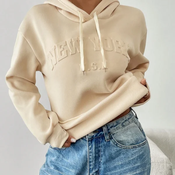 SMY Women’s Fashion Hooded Mock Neck Letter Embossed Casual Sweatshirt