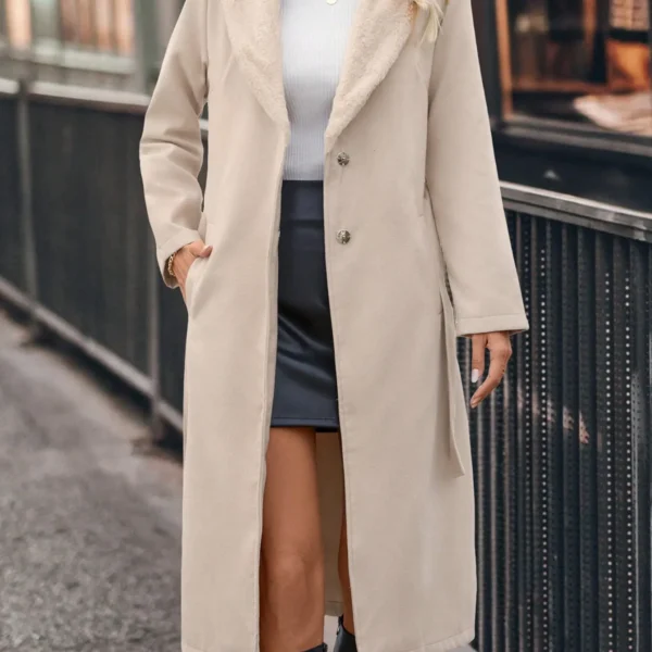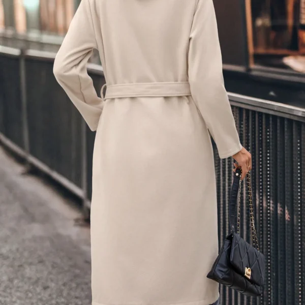 SMY Women’s Fashionable & Elegant Apricot Long Wool Blend Coat