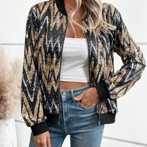SMY Women’s Fashion Asymmetrical Golden Sequin Jacket For Party