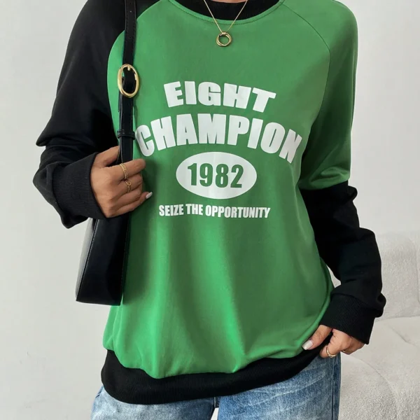 SMY Women’s Fashionable Avant-Garde American Style Contrast Color Letter Print Sweatshirt