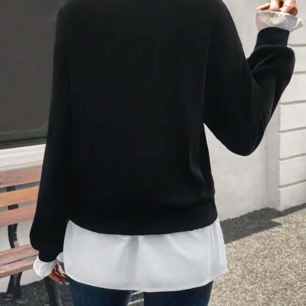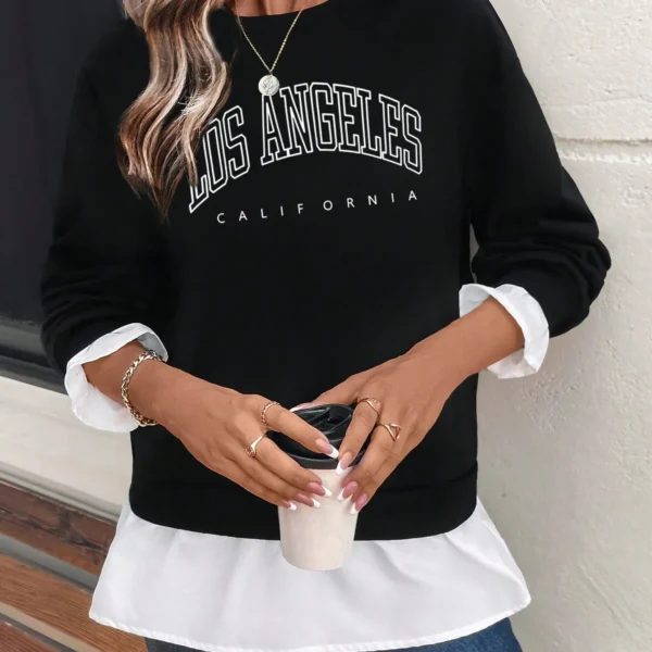 SMY Women’s Fashion Casual Black & White Contrast Color Letter Print Sweatshirt