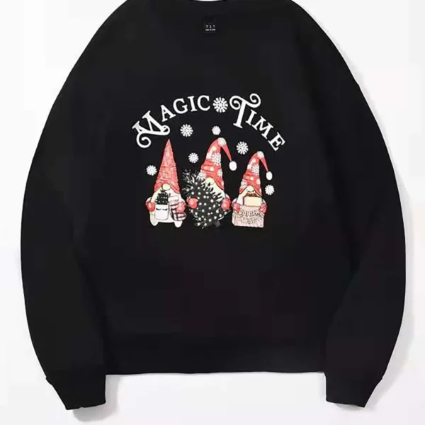 SMY Christmas Print Casual Round Neck Regular Hoodie