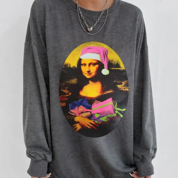 SMY Casual Mona Lisa Pattern Round Neck Long Christmas Hoodie