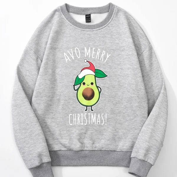 SMY Casual Round Neck Regular Printed Avocado Pattern Christmas Hoodie