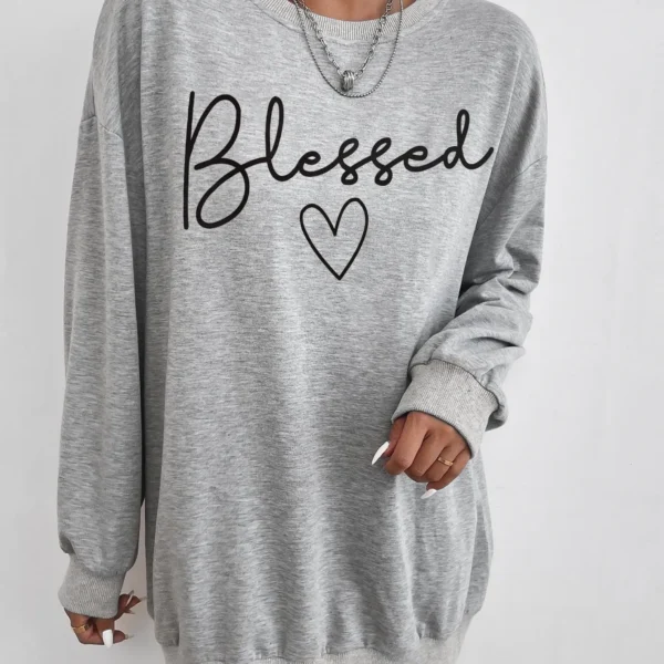 SMY Casual Letter Printed Blessed Round Neck Long Hoodie