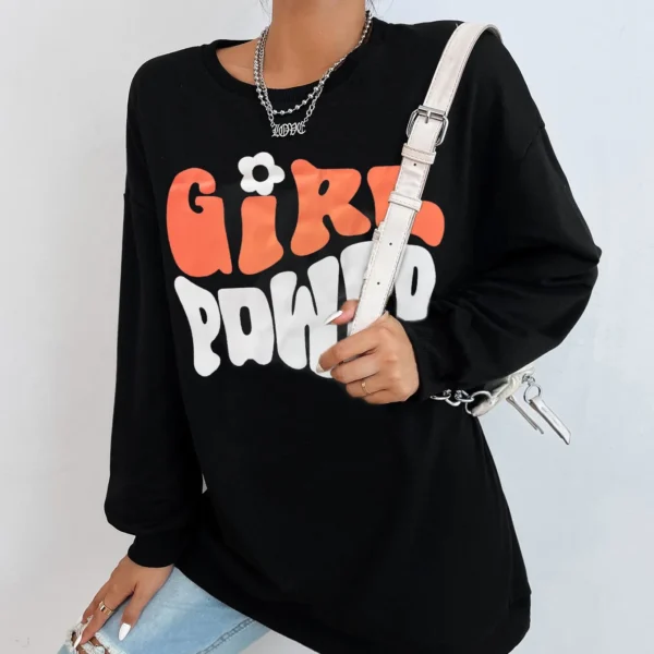 SMY Casual Round Neck Long Letter Printed GIRL POWER Hoodie