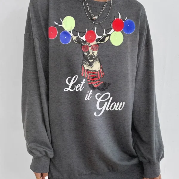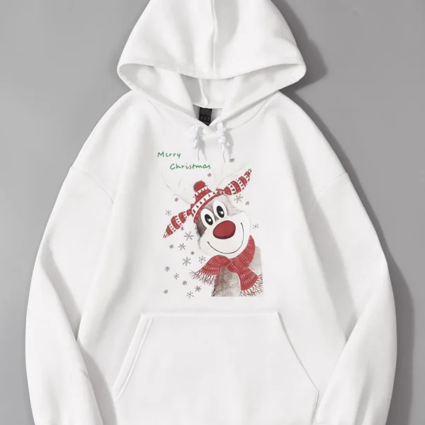 SMY Casual Deer Pattern Round Neck Long Christmas Hoodie