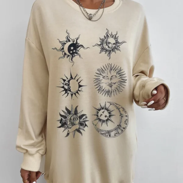 SMY Casual Abstract Sun Pattern Round Neck Long Hoodie