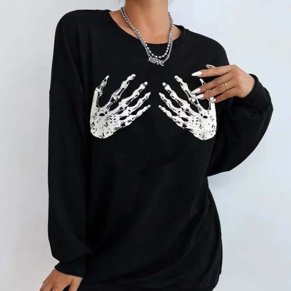 SMY Casual Skeleton Hand Pattern Round Neck Long Hoodie