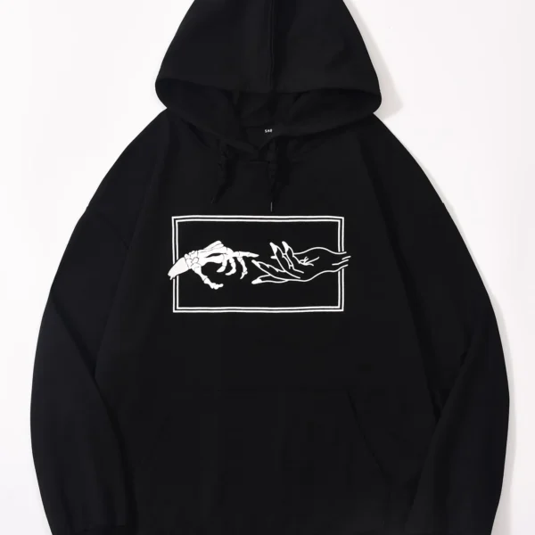 SMY Casual Drawstring Skeleton Hand Pattern Hooded Regular Hoodie