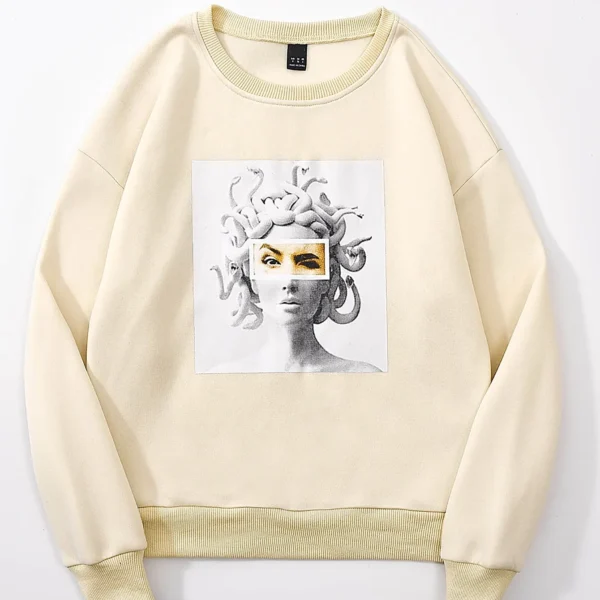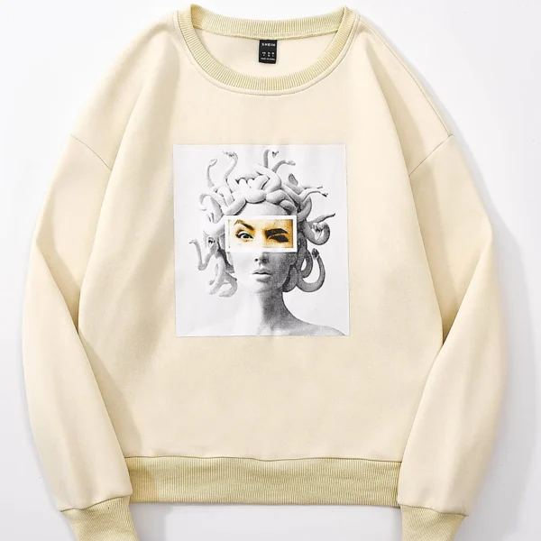 SMY Casual Abstract Female Avatar Round Neck Regular Printed Hoodie