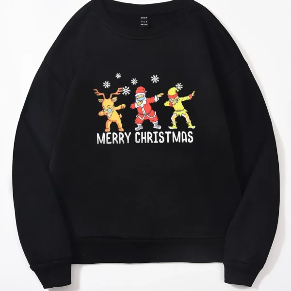SMY Casual Round Neck Regular Printed Santa Claus Pattern Christmas Hoodie