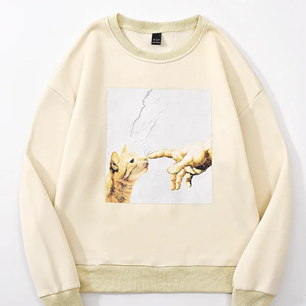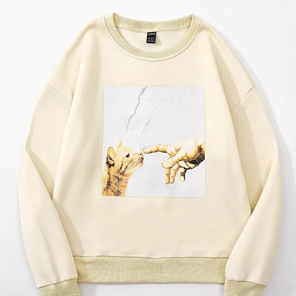 SMY Casual Cat Pattern Round Neck Regular Printed Hoodie