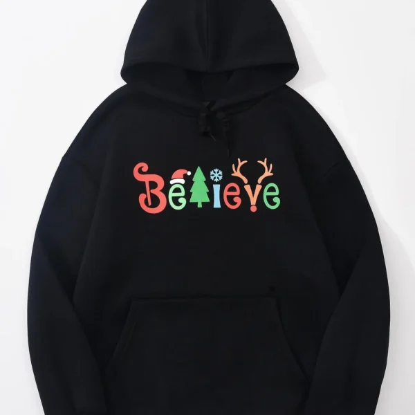 SMY Casual Hooded Regular Letter Printed Believe Christmas Hoodie