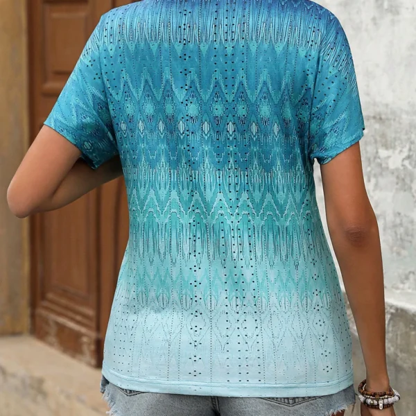 SMY Women’s Printed Notched V-Neck Short Sleeve T-Shirt