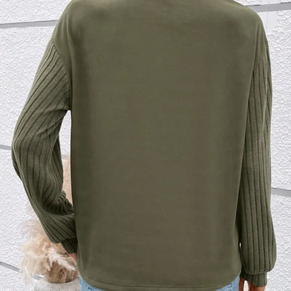 SMY Women Casual V-Neck Colorblock Leopard Print Long Sleeve Top
