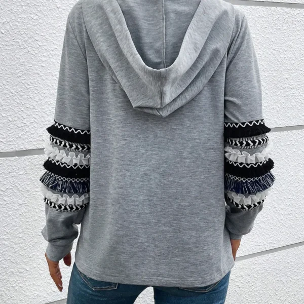 SMY Women’s Contrast Color Fringe Detail Half-button Front Drawstring Hoodie