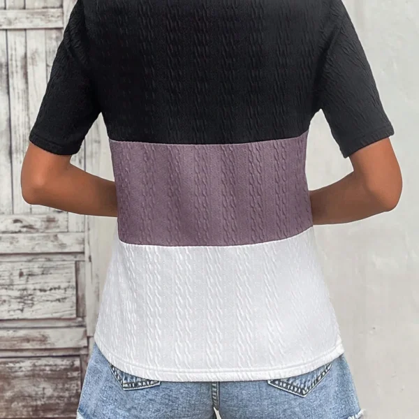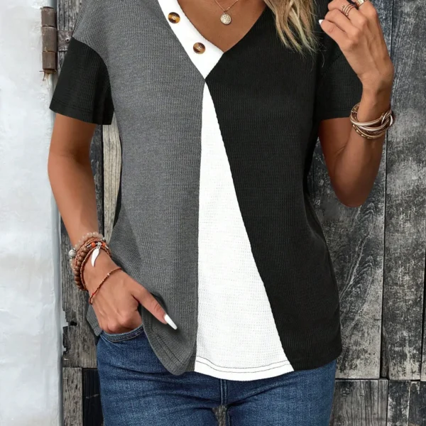 SMY Women’s V Neck Contrast Color Short Sleeve T-Shirt