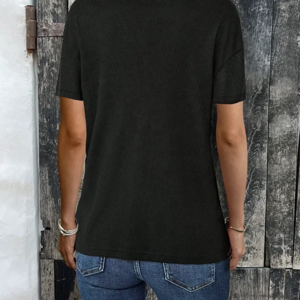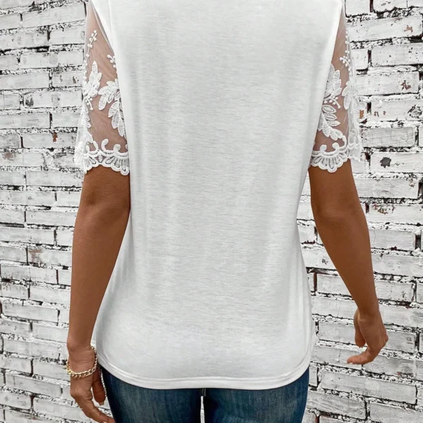SMY Women’s Embroidered Mesh Short Sleeve Button Half Placket T-Shirt