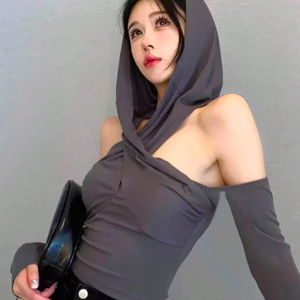 SMY Unity Women’s Crossed Open Shoulder Hooded Long Sleeve Sweatshirt