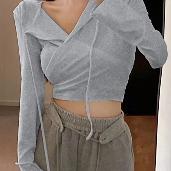 SMY Unity Women’s Slim Fit Short Minimalist Sexy Style Cross V-Neck Hooded Sweatshirt