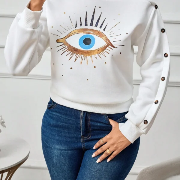 SMY Slayr Women’s Casual Asymmetrical Neck Eye Print Pullover Sweatshirt